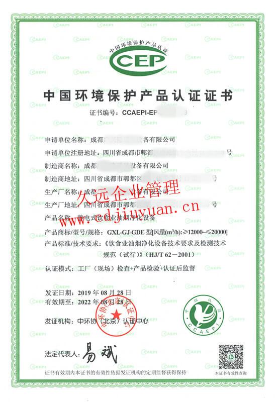 中國環(huán)境標志產品認證證書(十環(huán)認證)